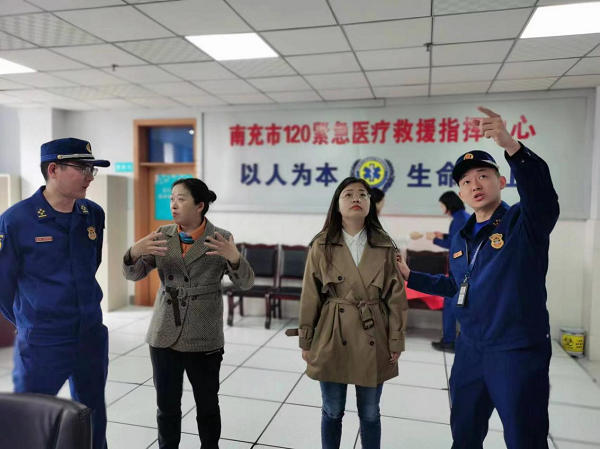 在中心副主任袁可等人员陪同下,市消防救援支队主任彭晖、顺庆区消防救援大队副大队长廖龙等对120指挥中心消防器材、中心机房、烟感报警装置、发电机及UPS、电器线路、自动喷淋系统等逐一进行全面检查。