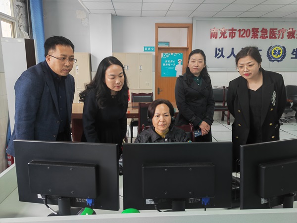 4月9日,市财政局社保科科长刘庆华一行深入市120指挥中心走访调研,市疾控局局长、市卫健委副主任唐波、市120指挥中心主任邹韬、副主任袁可及相关科室负责人陪同调研。