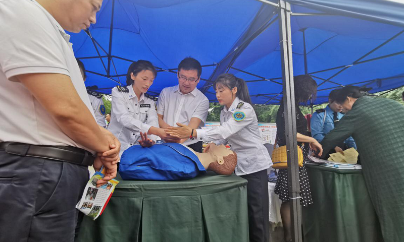 党员同志们向市民们详细讲解了心肺复苏术的基本理论知识与操作方法,并运用人物模型现场向大家示范如何正确进行胸外心脏按压及海姆立克急救法等内容。实用而有趣的培训内容吸引了不少市民参与活动,党员们还热情地手把手教授大家急救知识和技能,现场学习氛围十分活跃!
